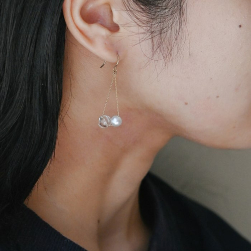 うるりとしたガラスとパールを組み合わせました。 空気をふくんだガラスは、軽やかに耳元でゆらめきます。 〇Freshwater Pearlシリーズ HARIOのガラスと淡水パールを組み合わせた、新しいシリーズです。 高い養殖技術により生み出される、上質な淡水パールをあしらっています。 ※ハンドメイドのため、形状に個体差が出る場合がございます。 ※アクセサリーの金具は、体質によってかゆみ・かぶれが生じる場合があります(金属アレルギー等)。皮膚に異常を感じた時はご使用をお止めいただき、皮膚科専門医にご相談ください。 ※離島への配送不可(北海道・沖縄本島は可) ※着日指定不可 【サイズ】 ガラス大きさ:Φ7(mm) チェーン長さ:65(mm) 【素材】 チャーム:耐熱ガラス、淡水パール 金具:真鍮+ゴールドメッキ ※フック部分のみステンレス+ゴールドメッキ 【製造/加工の内容】 ガラスの生産