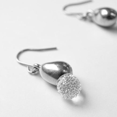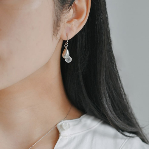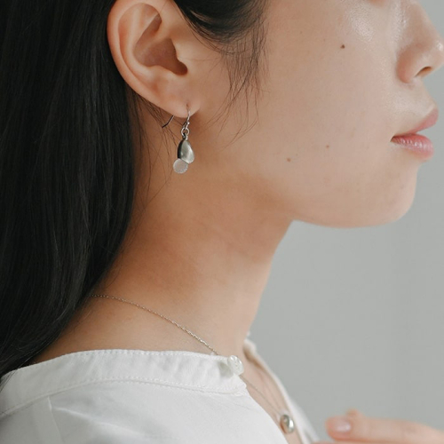 雫がしたたり落ちる瞬間、きらりと光る水滴をイメージしました。なめらかな質感とフォルムで、装いのなかで佇むように輝きます。