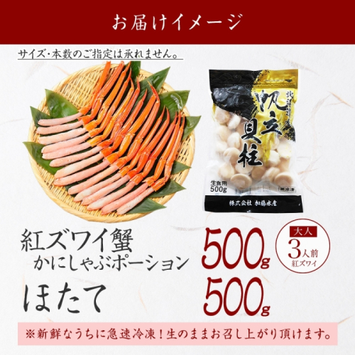 - 3390. 紅ズワイガニ ポーション 500g ホタテ 500g セット 紅ズワイ 紅ズワイ蟹 紅ずわいがに カニ かに 蟹 ほたて 生ほたて 帆立 海鮮 海鮮丼 しゃぶしゃぶ 北海道 弟子屈町