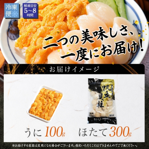 3382. うに チリ産 冷凍 100g ホタテ 300g セット ファミリー ウニ 雲丹 ほたて 生ほたて 帆立 貝柱 貝 海鮮 海鮮丼 送料無料 北海道 弟子屈町