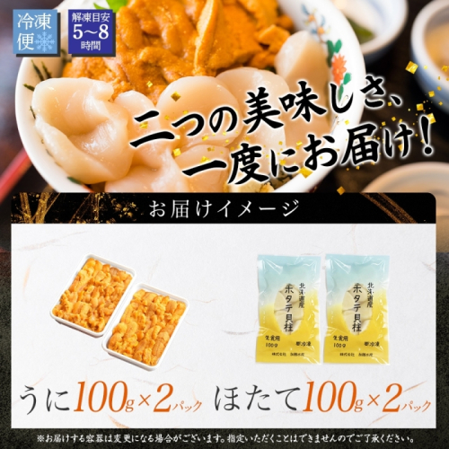 3351. うに チリ産 冷凍 200g ホタテ 200g 計400g セット ウニ 雲丹 ほたて 生ほたて 帆立 海鮮 海鮮丼 送料無料 北海道 弟子屈町