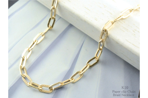 - k10 ネックレス チェーン ペーパークリップ ブレイド チェーン 40cm イエローゴールドk10 デザインチェーン no.080bk100 [シエロ 山梨県 中央市 21471010] ジュエリー アクセ アクセサリー K10 ゴールド