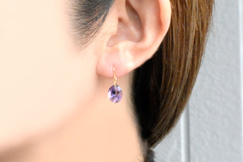 アメジストの艶めきを楽しむのに相応しいシンプルデザインピアスです。
