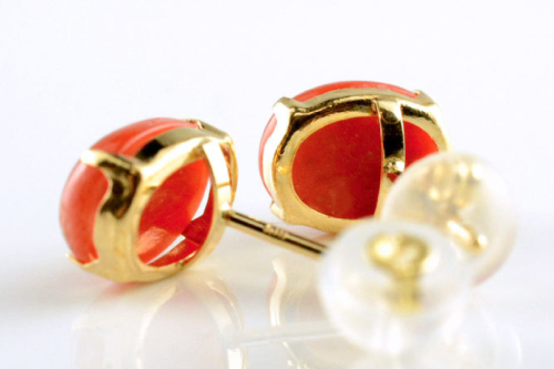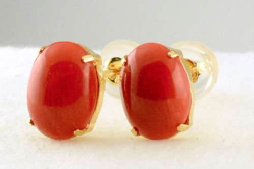- k18 ピアス 珊瑚 サンゴ シンプル k18 イエローゴールド 血赤珊瑚 no.cas6800 [シエロ 山梨県 中央市 21470998] ジュエリー アクセ アクセサリー 18金 K18 イエロー ゴールド