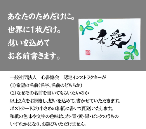 ポストカードより小さめの和紙に書いて、配送いたします。