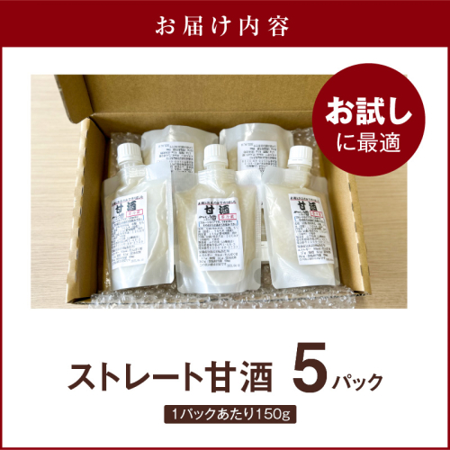 お試し【無添加・生米麹】ストレート甘酒 150g×5パック ノンアルコール・国産米使用・飲む点滴 H140-037