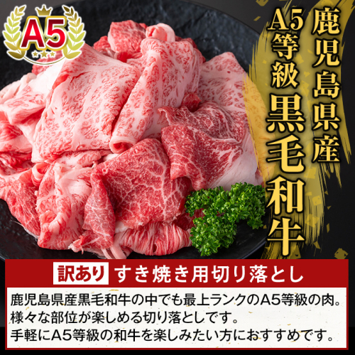 • K-472-C <訳あり>鹿児島県産A5等級黒毛和牛すき焼き用切り落とし(計1.35kg)【ふるさと産直バザール】霧島市 部位ミックス 切落し 牛肉 国産 鹿児島県産 肉 精肉 ワケアリ