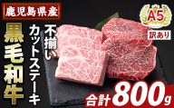 K-475-B <訳あり>鹿児島県産黒毛和牛A5等級サイコロステーキ(計800g) 【ふるさと産直バザール】霧島市 不揃い サイコロ ステーキ 牛肉 国産 鹿児島県産 肉 精肉