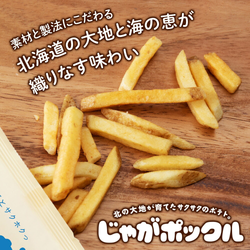 北海道のお土産として人気のじゃがポックルをご用意しました。 じゃがポックルは100%北海道のじゃがいもを使用しており、 千歳市内にあるカルビー北海道工場のみで作っています。 口に入れたときにホタテ味が感じられ、じんわりとホタテの旨みがひろがります。干し貝柱の出汁を煮詰めたホタテエキスパウダーと、北海道産ほたてパウダーを使用しています。 ※いつもより小さなじゃがポックルが入っています。 天候不良により、現在使っている北海道産のじゃがいもが小さめです。 農家さんが大切に育ててくれたじゃがいもを大事に使いたいという想いから、 小さなじゃがいもも、じゃがポックルにしました。 ※画像はイメージです。 ※生産の都合上、発送にお時間をいただく可能性がございます。