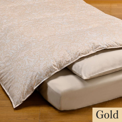 側生地は綿100%(140単糸サテン)で、軽くなめらかで肌触りが抜群です。天然繊維の生地は通気性・吸湿性に優れ、羽毛との相性が抜群。