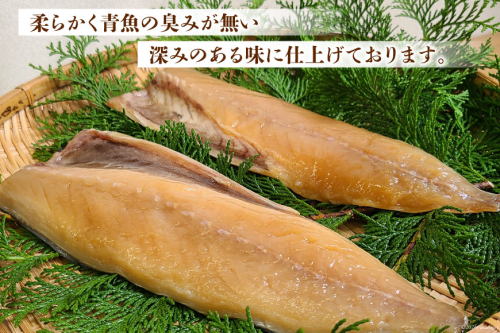 無着色なので程良い色合いがあり、肉質が柔らかく青魚の臭みがない深みのある味に仕上げております。