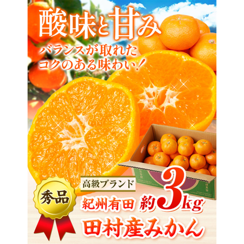 みかん 高級ブランド 秀品 紀州有田田村産みかん 3kg 株式会社魚鶴商店《12月上旬-1月中旬頃出荷(土日祝除く)》和歌山県 日高町 田村産 柑橘 フルーツ くだもの 果物