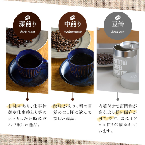 • 自家焙煎珈琲(深煎り、中煎り・各100g×1袋)と豆缶(グレー)のセット!阿久根市 コーヒー 珈琲 珈琲豆 コーヒー豆 焙煎豆 飲料 ドリンク coffee 容器 入れ物 ケース【まちの灯台阿久根】akn027-18