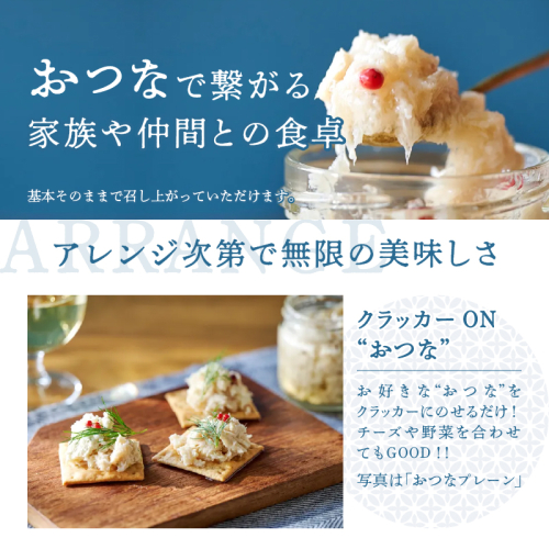 【説明】国内ツナ缶発祥の地 ”焼津”で手作りで製造するツナのオイル漬けです。静岡県の美味しいを瓶の中に詰め込みました。おつながりの「おつな」皆さんとつながる想いを込めています。箱入りですのでギフトとしてもお使いいただけます。