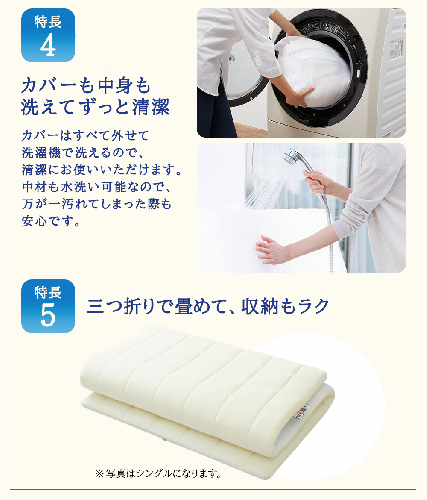 カバーは両面仕様で、夏面は通気性良く柔らかく、冬面はふっくら暖かい寝心地です。