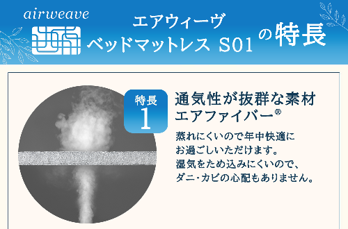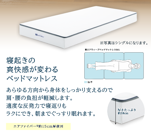 エアウィーヴ ベッドマットレス S01 ダブル 寝具 ベッドマットレス ベット マットレス サイズ オールシーズン対応 ぐっすり 安眠 快眠 健康 高反発 腰 肩 熟睡 寝心地 新生活 洗濯可 送料無料 体圧分散 大人気 日本製 国産 妊婦 赤ちゃん ペット