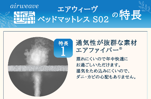 エアウィーヴ ベッドマットレス S02 シングル ベッド サイズ セミダブル ダブル クイーン オールシーズン対応 ぐっすり ホテル 安眠 健康 高反発 腰 肩 熟睡 寝具 寝心地 新生活 洗える 洗濯可 送料無料 体圧分散 大人気 日本製 国産 人気 妊婦 赤ちゃん