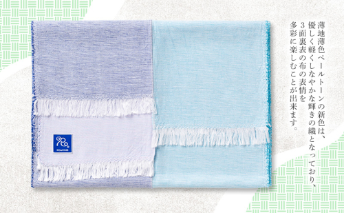 レーヨンブライトの経糸と先染め極細木綿のひき揃いの緯糸により自社独自の織成と相まって、薄地薄色ペールトーンの新色は、優しく軽くしなやかな輝きの織となっており、3面裏表の布の表情を多彩に楽しむことが出来ます。