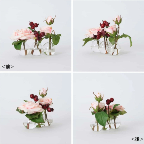 ガラスベースに水に見立てた透明な樹脂を合わせ、よりリアルに花の自然な姿を表現するスタイル、イリュージョンフラワー。