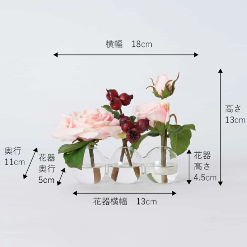 提供:株式会社 エミリオ・ロバ 庭先で咲いているガーデンローズの自然な姿をそのままに表現。 主役(プリマ)級の華やかさを纏っているという印象からエミリオ・ロバでは「プリマローズ」と名付けました。 花言葉は【愛・美】幾重にも重なる花びらのグラデーションが美しく、思わず触ってみたくなるほど瑞々しく、花びらのしわや葉脈までリアルに再現しています。 花びらだけでなく、茎や葉にいたるまで造花とは思えないほど精妙に仕上げています。 ガラスベースに水に見立てた透明な樹脂を合わせ、よりリアルに花の自然な姿を表現するスタイル、イリュージョンフラワー。 華やかさの中にも上品で落ち着いたイメージのアレンジです。 ちょっとしたギフトにもオススメです。 ※こちらの商品は専用のクリアケースが付きます。