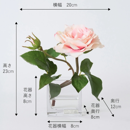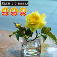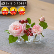 提供:株式会社 エミリオ・ロバ 庭先で咲いているガーデンローズの自然な姿をそのままに表現。 主役(プリマ)級の華やかさを纏っているという印象からエミリオ・ロバでは「プリマローズ」と名付けました。 花言葉は【愛・美】幾重にも重なる花びらのグラデーションが美しく、思わず触ってみたくなるほど瑞々しく、花びらのしわや葉脈までリアルに再現しています。 花びらだけでなく、茎や葉にいたるまで造花とは思えないほど精妙に仕上げています。 ガラスベースに水に見立てた透明な樹脂を合わせ、よりリアルに花の自然な姿を表現するスタイル、イリュージョンフラワー。 プチギフトに最適です。