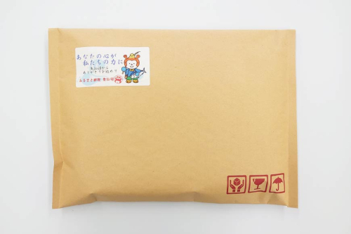 ・宛名ラベルのご依頼主欄には、返礼品の発送手配をおこなう「結デザイン有限会社」と記載され、当自治体の返礼品と分かる記載があります。