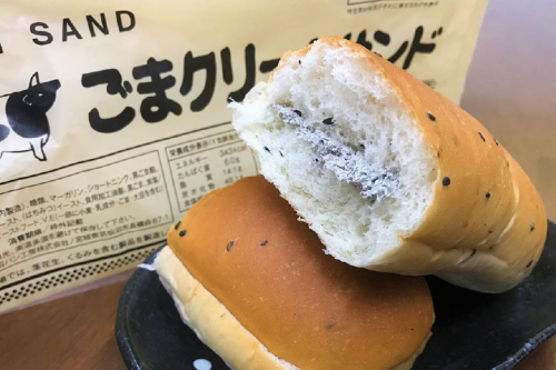 クリームサンドの生地にごまを練りこみ、クリームにもごまが入っています。