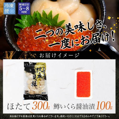 - 3608. 鱒いくら醤油漬け 100g ホタテ 300g 鱒いくら いくら イクラ 醤油漬け マス ほたて 帆立 貝柱 海鮮 海鮮丼 セット 送料無料 北海道 弟子屈町