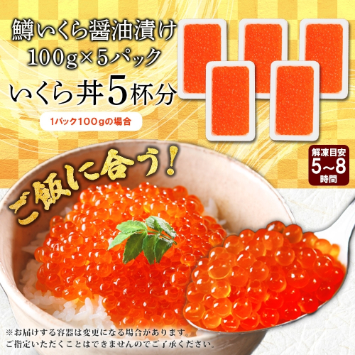 - 3600. 鱒いくら醤油漬け 計500g 100g×5パック 鱒いくら いくら イクラ 醤油漬け 鱒 マス 魚卵 小分け 海鮮 送料無料 北海道 弟子屈町