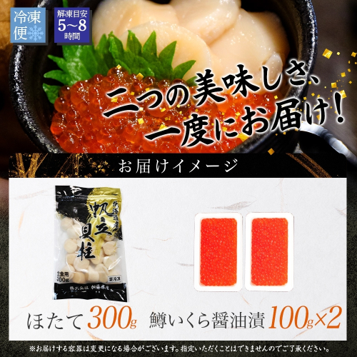- 3609. 鱒いくら醤油漬け 計200g 100g×2パック ホタテ 300g 鱒いくら いくら イクラ 醤油漬け マス ほたて 帆立 貝柱 海鮮 海鮮丼 セット 送料無料 北海道 弟子屈町