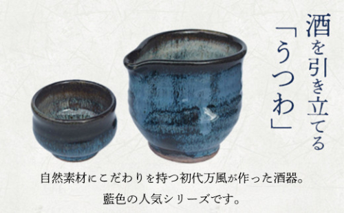 蔵王焼万風窯 ぐい呑みと日本酒用片口酒器(ブルー) 【04301-0759】 2047824 - 宮城県蔵王町