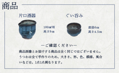 • 蔵王焼万風窯 ぐい呑みと日本酒用片口酒器(ブルー) 【04301-0759】