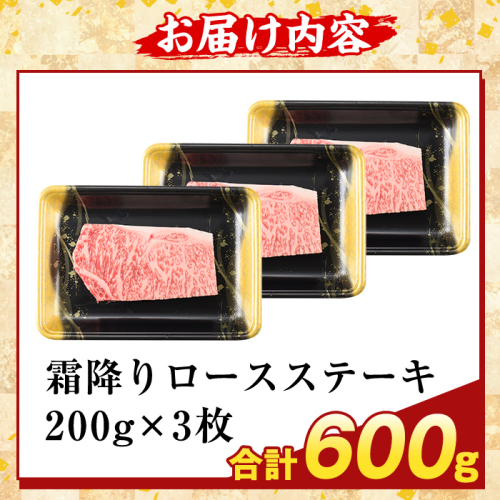 K-476-C 鹿児島県産A5等級黒毛和牛霜降りロースステーキ(計600g) 【ふるさと産直バザール】霧島市 牛肉 国産 鹿児島県産 ロース ステーキ 肉 精肉