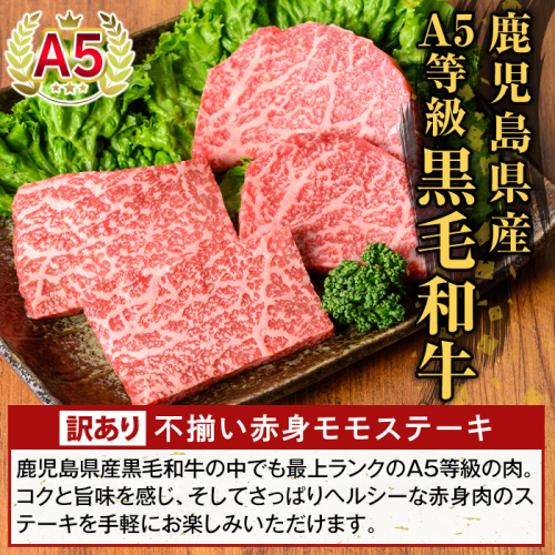 • K-478-B <訳あり>鹿児島県産A5等級黒毛和牛不揃い赤身モモステーキ(計480g) 【ふるさと産直バザール】霧島市 牛肉 国産 鹿児島県産 赤身肉 不揃い ワケアリ もも ステーキ 肉 精肉