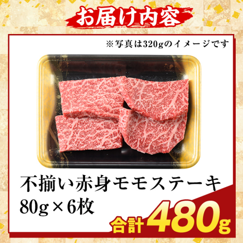 K-478-B <訳あり>鹿児島県産A5等級黒毛和牛不揃い赤身モモステーキ(計480g) 【ふるさと産直バザール】霧島市 牛肉 国産 鹿児島県産 赤身肉 不揃い ワケアリ もも ステーキ 肉 精肉 2059121 - 鹿児島県霧島市