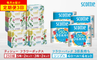- 【定期便3回】【毎月1回お届け】【スコッティ】ティシュー フラワーボックス 250組(5箱パック×2セット)+フラワーパック 3倍長持ち(4ロール(シングル)パック×6セット)ティッシュ トイレットペーパー 日用品