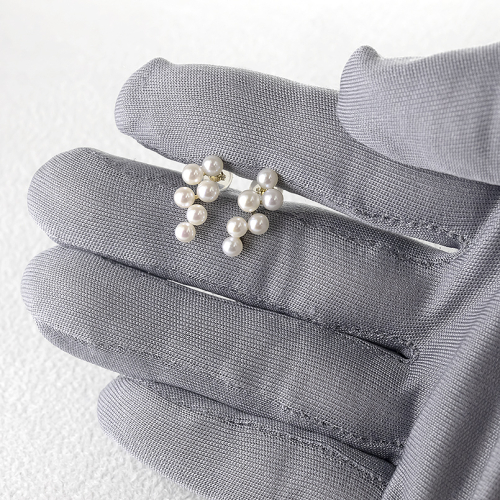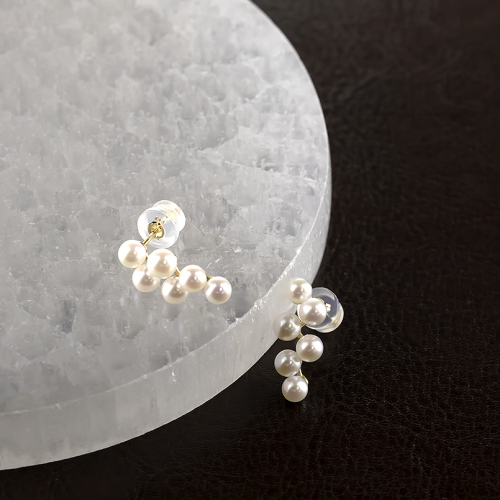 艶やかな愛らしさを持つアコヤ真珠のベビーパールをリズミカルに配置した上品な大人可愛いピアス
