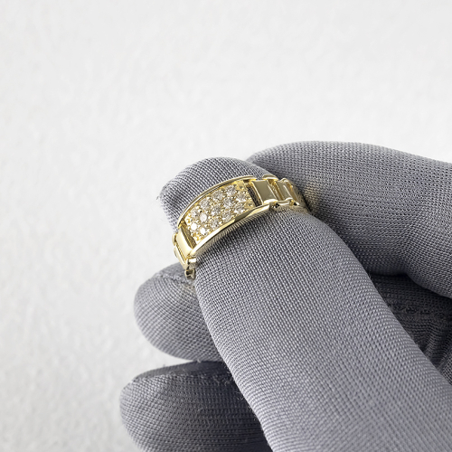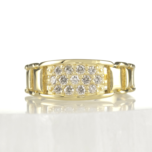 中央にパヴェ留めされたダイヤモンド面は幅広で燦然と輝く