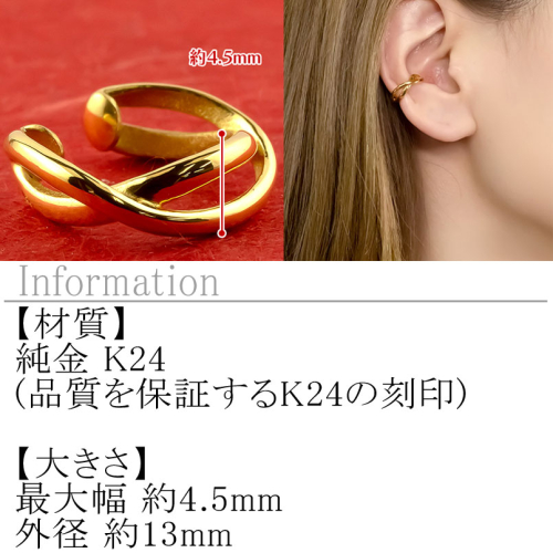 - 純金 イヤーカフ レディース 24金 イヤリング イヤークリップ 片耳 ゴールド 24k k24 地金 イヤカフ シンプル ギフト プレゼント 記念日 贈り物 おしゃれ 人気 誕生日 220826102k24 SWAA220