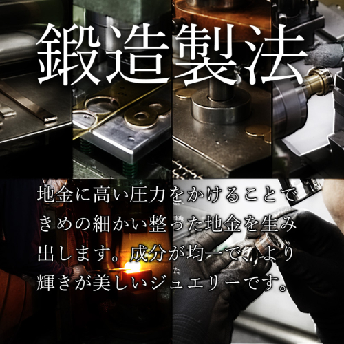 鍛造製法により、成分が均一でより輝きが美しいジュエリー