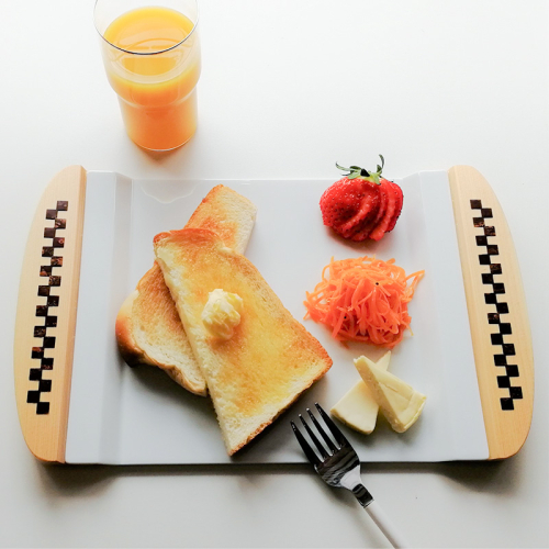 美濃焼の磁器でできた本体に、ヒノキ製の持ち手部分を両端に取り付けた「Tsunagu」シリーズのシンプルかつモダンなパンプレートです。