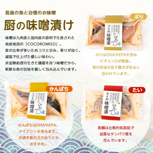 KURIYAの手づくり味噌漬「金箱」:タイの味噌漬×2、カンパチの味噌漬×2、ブリの味噌漬×2※1パックに1切れ入り