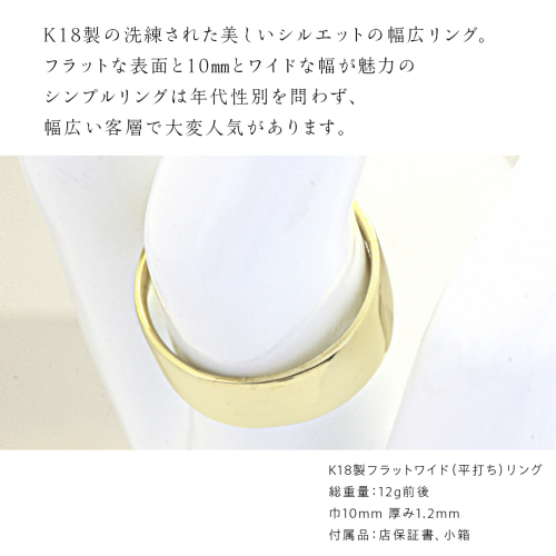 K18製 10mm フラットワイド リング ( 平打ち ) フォーマル 冠婚葬祭 結婚式 ゴールド リング 指輪 アクセサリー シンプル 18金 金 ギフト 記念 贈り物 贈答用 アクセサリー ジュエリー ジュエリーマーノ 桜川市 [AH150sa]