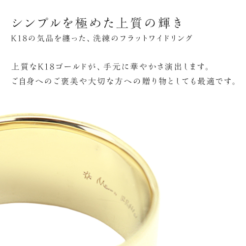 - K18製 10mm フラットワイド リング ( 平打ち ) フォーマル 冠婚葬祭 結婚式 ゴールド リング 指輪 アクセサリー シンプル 18金 金 ギフト 記念 贈り物 贈答用 アクセサリー ジュエリー ジュエリーマーノ 桜川市 [AH150sa]