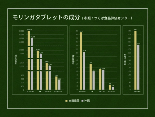 - 沖縄産モリンガと比較し、高い栄養価を確認済み(つくば食品評価センター監修)