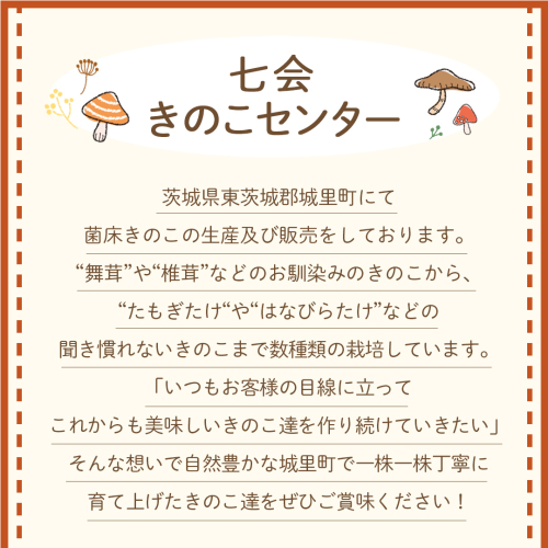 そんな想いで自然豊かな城里町で一株一株丁寧に育て上げたきのこ達をぜひご賞味ください!