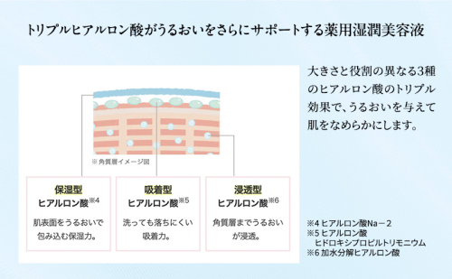 【その他成分】ヒアルロン酸Na-2、加水分解ヒアルロン酸、ヒアルロン酸ヒドロキシプロピルトリモニウム、濃グリセリン、ユキノシタエキス、コンフリーエキス、ウメ果実エキス、カンゾウ葉エキス、グリセリル-N-(2-メタクリロイルオキシエチル)カルバメート・メタクリル酸ステアリル共重合体、ソルビトール発酵多糖液、植物性スクワラン、天然ビタミンE、オリブ油、ノバラ油、水、BG、DPG、ジメチコン、POE・ジメチコン共重合体、POEセスキステアリン酸メチルグルコシド、POE(7)ラウリルエーテル、POEステアリルエーテル、POPメチルグルコシド、オクタン酸セチル、フェノキシエタノール、セスキステアリン酸メチルグルコシド、N-ラウロイル-L-グルタミン酸ジ(フィトステリル・2-オクチルドデシル)、軽質流動イソパラフィン、エタノール、グリセリンモノステアリルエーテル、ポリグリセリン、セトステアリルアルコール、粘度調整剤、pH調整剤、EDTA-2Na、メチルパラベン
