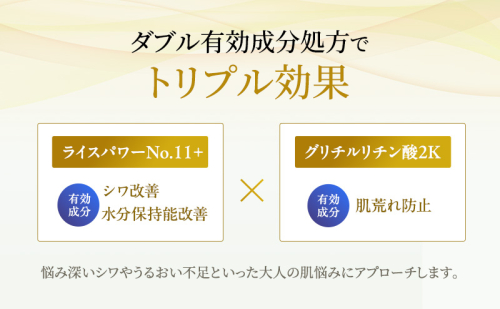 シワ改善と皮膚水分保持能改善というダブル改善効果を備えた、医薬部外品の有効成分「ライスパワーNo.11+」を配合した薬用シワ改善美容液。