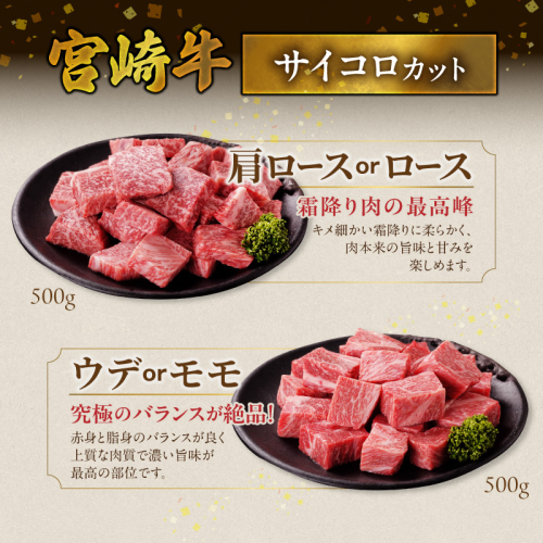 畜産農家応援! 宮崎牛サイコロステーキ2種セット500g×2パック_AC-N206