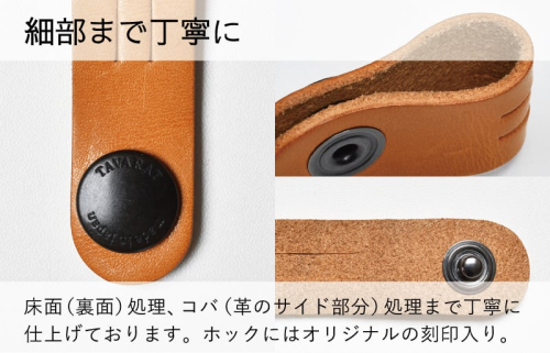 メンズ雑貨ブランドTAVARATのコードクリップは、国産ピットタンニンレザーを使用した日本製のアイテムです。イヤホンやUSBケーブルなどをすっきりとまとめることができ、中央の切り込みにコードを通すことでクリップとコードを固定できます。使うほどに馴染み、深い色合いに変化するのが特徴です。 (ブランド型番 Tps-059) 本革、真鍮